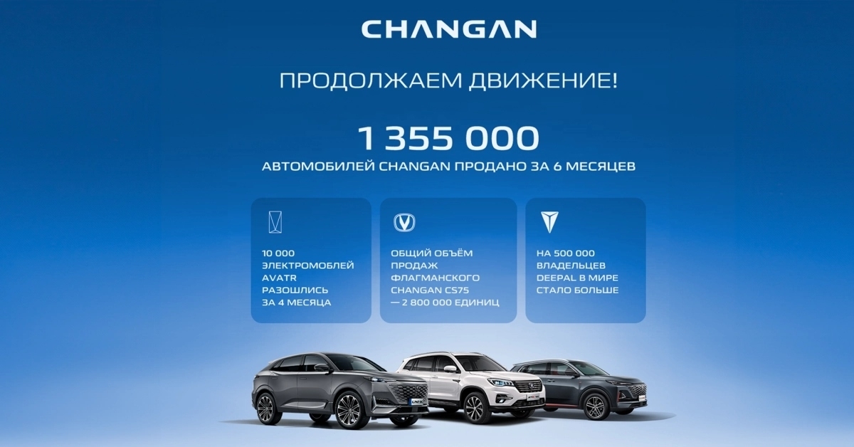 - Более 1 355 000 автомобилей Changan продано за шесть месяцев.